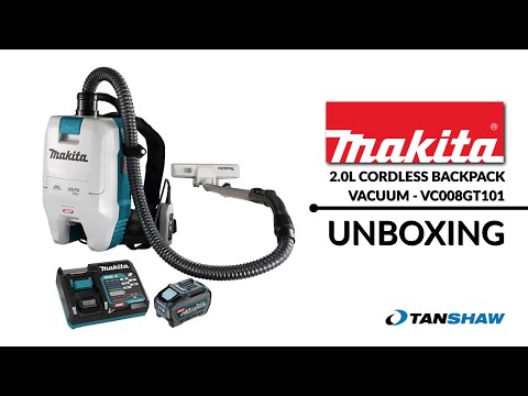 LXT Technology. Durable and compact design; weighs only 10.4 lbs. Includes: 40V Max (5.0AH) Li-Ion battery BL4050F, Rapid charger, filter, 1 1/4" x 3' hose, hose band, floor nozzle, corner nozzle, telescopic pipe, bent pipe, paper filter bag, dust bag, backpack shoulder harness, harness cover.